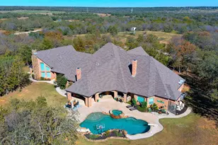 Large and expansive country estate with essentially 2 residences under 1 big roof. Located less than 1 hour north of downtown Fort Worth, this dream property is the perfect balance of peaceful rural living with no shortage of room to roam in a custom home loaded with extras. A classic stone ranch house with multiple covered porches and an elaborate pool and backyard area for entertaining. The main house features 6 large bedrooms and 4 full baths with an open layout from the kitchen to living room and large dining area. Appliances and the finish out features like a bar and wine rack are what you might expect for such a fine home. Upstairs is a large game room and a theatre room. There is a 6 ft wide hallway connecting the second living space with its own master bed and bath on the lower floor and second bedroom with a bath and loft upstairs. The high vaulted ceilings in the living area wouldn't be what you'd expect in a second living quarters. The back yard with a full outdoor kitchen pulls it all back together with a large pool and plenty of open space. Adjoining the backyard is a large dog run that can double as a small turnout for horses. A short distance behind the house is a 50 ft by 50 ft insulated shop with 2 large doors. The open space would be perfect for an RV, boat, tractor, or any other equipment you're needing to keep covered and don't want in your 5-car garage at the main residence. Being 42 acres in size, the rolling terrain with oaks, mesquite, cedars, and a variety of other tree species make the overall size seem much larger when wandering around. With this hill country feel, abundant wildlife frequent the property allowing for good hunting opportunities. For such outdoor enthusiasts, the property is in close proximity to the local attraction of lake Bridgeport where boating and fishing are always an option. Showing by appointment only.