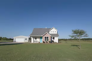 Experience the perfect blend of country charm and modern comfort in this beautifully designed 3-bedroom, 2.5-bath home on 5 scenic acres in the desirable Nolan River Estates just outside city limits and minutes from Cleburne city amenities. Offers an easy commute to Fort Worth and surrounding cities - only 45 minutes to Fort Worth! Step inside to an open-concept layout featuring a large living room with a cozy wood-burning fireplace, connected to the kitchen with granite countertops, a custom wood-top island with seating, and a separate dining room space, along with windows and French doors opening to the large covered back patio. Great for entertaining! The spacious primary suite is located downstairs and offers a luxurious ensuite bath with a Hollywood tub, separate shower, and a walk-in closet that connects directly to a well-appointed utility room with built-in cabinets in addition to the private French doors access leading to the covered back patio area. Upstairs, two additional bedrooms share a full bath and one includes a private balcony overlooking the peaceful countryside. Bonus features include a built-in safety-storm shelter under the stairway inside the downstairs half bath, and covered patios with stunning custom wood ceilings and lighting create the perfect setting for relaxing. The separate guest suite boasts a private entrance, covered patio, kitchenette, and a bathroom with shower ideal for multigenerational living, guests, or income potential. Car enthusiasts and hobbyists will love the massive 30x40 workshop with electricity and drive-through garage doors (18x10 and 8x10). Enjoy the freedom of country living with livestock permitted per bylaws and restrictions of HOA, close proximity of schools in Cleburne ISD, only 5 minutes from beautiful Lake Pat Cleburne, and just down the road from the Cleburne Golf Links Country Club. Enjoy wildlife sightings include deer, eagles, and more-your own private slice of Texas paradise awaits!