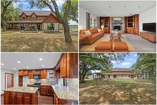 Discover the perfect blend of comfort, space, and tranquility in this beautifully custom-built home nestled among the trees just outside Cleburne's city limits. This thoughtfully designed residence offers four spacious bedrooms and two and a half baths, catering perfectly to your lifestyle needs with a seamless blend of classic charm and contemporary updates. Step into a welcoming interior featuring newer flooring throughout, complemented by the timeless appeal of granite countertops and wooden cabinetry in the kitchen. Ample built-ins and abundant windows enhance the open, airy atmosphere, flooding each room with natural light and showcasing the home's bespoke craftsmanship. The generous bedrooms promise restful retreats, while the two expansive living areas provide ample space for relaxation and entertaining guests. Functionality meets convenience in the large laundry room, which smartly accommodates space for an additional fridge or freezer, catering to both everyday living and special occasions. The exterior of the home is equally impressive, showcasing an aesthetically pleasing stone exterior with a large covered porch. Enjoy peaceful afternoons on the back patio, overlooking a tranquil pond-a perfect setting for unwinding and appreciating nature's beauty. A circle driveway ensures easy access and ample parking, surrounded by pipe fencing. Completing this picture-perfect property is a practical storage building, offering additional space for all your organizational needs. With every detail considered, this home is a delightful retreat that provides comfort, style, and serene living. Home's like this don't come on the market often. Schedule your showing today and you'll be on your way to calling this one HOME SWEET HOME!