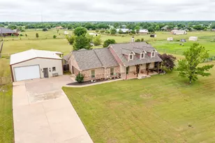 HOME HAS AN APPRAISAL! Serene country living awaits on this nearly two-and-a-half-acre lot with a breath-taking view of the Texas Western sky. An extraordinary home outside of city limits, yet close to shopping, entertainment, and commuting near the Chisolm Trail. From the moment you pull up, you will be captivated. Inside, you are welcomed with elegant slate flooring and rich hardwoods lure you to an open concept living, dining and kitchen space. Centered is a gorgeous wood burning fireplace and custom built in cabinets. Natural light peeks through the ample windows and lights up the home. The kitchen is a culinary delight full of cabinets and countertop workspace. You will be amazed at the size of the walk-in pantry! Spacious four bedrooms split lay out ensure everyone has their special place to retreat. Enjoy entertaining inside or outside with the massive covered back patio overlooking a tranquil country scene complete with a pond. Need a MIL space? This is the home for you! The workshop has a MIL quarters complete with kitchenette and accommodations for any special needs. The workshop has an elevator for easy access to the loft for storage, extra parking capabilities and much more! Energy efficient Pella windows and encapsulated foam insulation. The property is completely fenced and ready for a horse, chickens, goats or family pets. Carpets are brand new in bedrooms, HVAC replaced in 2019, updated appliances and septic has been pumped, two storage buildings and equivalent to 3 and a half car garage spaces. You have to see it to believe it!