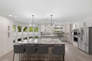 This beautifully updated home in the desirable Woodbridge community of North Lake Highlands offers modern upgrades and effortless indoor outdoor living. Renovated in 2022, it features a sparkling heated pool with pebble resurfacing, a new cool deck overlay, cordless robotic cleaner, and vibrant color changing lights perfect for year round entertaining. Inside, the chef's kitchen boasts a 7 foot island, KitchenAid stainless steel appliances including double ovens, complemented by lunar quartz quartzite counters extending to the window sills. Custom cabinets throughout add style and storage, while commercial-grade vinyl flooring, new fixtures, dual rain shower heads, and updated hardware provide a sleek, modern finish. Residents also enjoy a voluntary HOA that hosts community events throughout the year. Blending the charm of a sought after Dallas neighborhood with move in ready upgrades, this home is a rare find.