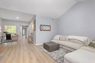 Completely reimagined and move-in ready, this sleek yet cozy 1-bedroom, 1-bathroom penthouse-style condo is bursting with charm and updates! From the brand-new luxury vinyl flooring and recessed lighting to the stunning modernized fireplace that stretches up to vaulted ceilings-every detail has been thoughtfully upgraded. The open and flexible floor plan features spacious living with French doors leading to a private covered balcony (complete with extra storage!), a bright and airy bedroom with a massive walk-in closet, and a stylish bath with double vanities. Enjoy new kitchen appliances, countertops, paint, lighting, and more. Nestled in a beautifully maintained community with two pools, a gym, and tennis-pickleball courts, plus the fridge will stay-this gem offers comfort, convenience, and a fresh modern vibe!