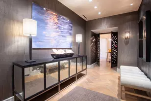 Fabulously finished bespoke Stoneleigh B+ plan has 3 bedrooms, 4.5 baths, 3 parking spaces, oak floors, 10 ft ceilings, 2 ventless fireplaces, 2 balconies, Smart home Lutron lighting & shades, sophisticated sound system. Direct-access elevator into a private foyer leading to a rotunda with custom designed metal doors and a domed ceiling. Interior designed by Sandy Zisman of Nine Interiors. Spectacular open living-dining-family room set against the backdrop of a large balcony with views of the Margaret Hunt Hill Bridge and downtown Dallas. Custom quartz and brass wall surround for television. Kitchen features book-matched quartzite over the range. The breakfast area boasts book-matched quartzite over a built-in hutch with a mirrored cabinet above. Appliances include a Wolf gas range, oven and steam oven, Scotsman Sonic ice maker, Sub-Zero 36" refrigerator and 36" freezer, Miele dishwasher, microwave, large walk-in pantry. Kitchen island has four bar stools and pendant lighting. Gorgeous onyx backlit powder room. Master suite features a balcony plus his and her baths, two very generous walk-in closets and signature rift white oak custom cabinets. Laundry room washer and dryer plus built-in cabinets and closet for a steamer. One guest suite with twin beds and ensuite bath also has access to the main balcony. The second guest suite with a king bed has access from the rotunda and private access from the main hallway. 5-star hotel amenities include concierge, valet, room service, fitness, resort-style pool, owner's lounge, theater, outdoor fireplaces & grills, a grand lawn, banquet room & catering kitchen. Uptown walkable to myriads of restaurants, entertainment venues and shops.