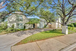 Guest house! Discover this elegant residence in a great location near shopping (Tom Thumb, Trader Joe's, Addison, and more!) ideally situated on a sprawling 0.6-acre lot in the coveted North Dallas area. Lovingly known as a bird sanctuary by its current owners, this home boasts a large backyard that blends seamlessly with a creek and is graced by an abundance of mature trees. The inviting entrance is marked by a distinctive circle drive leading to a charming entrance with an inviting green door. Inside, you'll be welcomed by impressive elevated views of the great room, complete with soaring ceilings, painted wood beams, a wet bar, and expansive hardwood floors. The formal dining room shares the grandeur of the elevated entryway. The galley-style kitchen is expertly designed with a gas cooktop, double ovens, THOR convection microwave, warming drawer, elegant granite countertops, and white subway tile backsplash. Located on the first level, the primary suite offers dual vanities and dual closets, complemented by a guest suite and a beautifully updated guest bathroom. Upstairs, two additional bedrooms feature new carpet and share an updated guest bathroom. French doors from the breakfast room lead to the driveway with porte cochére to an oversized two-car garage with indoor-outdoor carpeting, providing flexibility for use as a workout room, hobbyist shop, home office, gameroom, etc. The guesthouse impresses with its tall ceilings, a stunning fireplace, kitchenette, and a private entrance, making it ideal for guests, multi-generational living, nanny suite, gameroom, etc. The 2-car oversized garage attached to the guest house has indoor-outdoor carpeting and a high-end window HVAC unit ensuring all year round comfort for the hobbyist. Main house has 4 bedrooms, 3 bathrooms, and the area is 3,263 sq.ft. Guest house with full central HVAC is 516 sq.ft. with one main room and a full bathroom. Window unit is for supplemental cooling in guest house.