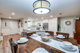 Beautifully updated one family home on a spacious half acre lot in the heart of old Denton. Originally built in 1949, this special home blends vintage charm with modern updates. The large primary suite offers a spa like bath with a separate tub and shower, dual sinks with granite countertops, and a generous walk in closet. Three additional guest bedrooms include a private guest suite on the opposite side of the home with a full bath and walk in closet, perfect for multigenerational living. The kitchen is a chef's delight with granite countertops, abundant cabinet space, a commercial grade gas range, and a huge breakfast bar. Enjoy open living spaces with LVP flooring and plush carpet in the bedrooms and living room. The large dining area is ideal for gatherings. Outdoors, mature shade trees, a large open patio, and a charming covered front porch provide inviting spaces for relaxation and entertaining. There is also a storage barn and a two car garage. Walking distance to TWU and Denton's vibrant downtown. This is a truly special home that offers comfort, style, and an unbeatable location.