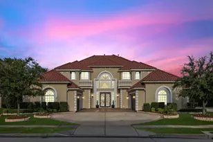 Welcome to this breathtaking luxury residence in the heart of Flower Mound's prestigious Creekside at Heritage Park. From the moment you arrive, the circular driveway and dual two car garages set an impressive tone for what lies beyond. Inside, a sweeping double staircase anchors the grand foyer, leading to a home designed for elegant living and effortless entertaining. This expansive 5 bedroom, 4 and a half bath home offers sophisticated design elements and upscale finishes throughout. The show stopping kitchen is a chef's dream, featuring premium stainless steel appliances including a 6 burner gas cooktop, double ovens, wine fridge, an oversized island, granite countertops, and custom two tone cabinetry with crown molding. Casual meals can be enjoyed at the island, while the formal dining room provides a refined space with serene views of the backyard oasis and sparkling pool. The living room exudes warmth with a cozy gas fireplace and includes a custom-built wine cabinet, perfect for showcasing your collection. The private primary suite is a true retreat, boasting a trey ceiling, built in shutters, and a spa like ensuite with a freestanding jetted tub, dual vanities, and a massive walk in closet. Downstairs also features a dedicated office, additional bedroom and full bath, plus a powder bath, while upstairs includes 3 additional spacious bedrooms, 2 full bathrooms, a game room, and a fully equipped media room for family fun and movie nights. Outside enjoy a show stopping in ground pool, complete with covered outdoor lounging space that includes an outdoor fridge and built in grill. Backing up to a greenbelt means ultimate privacy. Situated on a generous corner lot, this home is just steps away from scenic walking trails, neighborhood parks, and the Flower Mound Community Activity Center. With easy access to major highways, upscale shopping, dining, and DFW airport, this home blends convenience with luxury in one of the area's most sought-after neighborhoods.