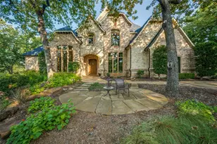 Discover an exquisite custom home in The Estates at Tour 18, a prestigious gated and guarded golf course community renowned for its vibrant social groups and neighborly charm. Perched on a serene, tree-lined hillside, this estate overlooks a tranquil pond with a fountain, offering a breathtaking and peaceful retreat. Designed for resort-style living, the backyard is an entertainer's paradise, featuring a pebble-tech pool with swim up bar, cascading waterfalls, and expansive patios perfect for hosting gatherings. Step inside to a pristine, like-new interior showcasing an updated gourmet kitchen, elegant formal living and dining rooms, a private study, wine storage, and a convenient pool bath. The open-concept kitchen flows seamlessly into the family room, ideal for everyday living. The main level boasts rich hardwood floors, a guest bathroom, and a luxurious primary suite with new floor to ceiling windows that frame stunning views of the lush surroundings. Designed to embrace its idyllic setting, the main floor's walls of windows flood the home with natural light, blending indoor sophistication with outdoor tranquility. Upstairs, find three generously sized bedrooms, each with en-suite baths and walk-in closets, a second laundry, a versatile game room, and a media room for endless entertainment. Additional features include a whole-home audio system, a climate-controlled fourth garage, ample storage, and a new roof installed in Fall 2023. Located in the acclaimed Argyle ISD, this home is just minutes away from Christian Liberty School, DFW airport, Texas Motor Speedway, and upscale dining and shopping, offering the perfect balance of seclusion and convenience.