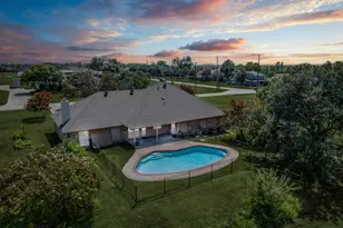 Nestled on an expansive 1.87-acre corner lot, this stunning single-story home offers a rare combination of space, privacy, and thoughtful updates. A sweeping circular driveway provides ample parking, welcoming you into an impressive layout featuring dual primary suites-perfect for multigenerational living or ultimate guest privacy. The spacious living room is anchored by a striking floor-to-ceiling brick fireplace with a wood mantle and is bathed in natural light from a full wall of windows, creating a warm and inviting atmosphere. The kitchen is both functional and charming, boasting built-in cabinetry, dual ovens, tiled backsplash, a new dishwasher, and a cozy eat-in dining area with a built-in hutch. Recent upgrades include fresh interior paint, new carpet, a 2025 roof and chimney, updated electrical panel, brand-new HVAC system, and 22 replaced window panes. The full-size utility room offers built-in storage, and the home's two full bathrooms plus a half bath add to the convenience. Step outside to a fully fenced backyard oasis featuring a covered patio, extended open patio, and a sparkling pool with recent enhancements including new tile, deco seal, and an autofill valve. With a massive yard that invites possibilities-from a sports court to a workshop or guest house-this property delivers the space and flexibility to make your dream lifestyle a reality.