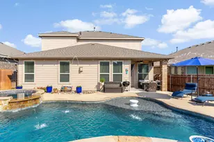 This meticulously cared for original-owner home features a POOL and NEWER ROOF installed in March 2025. The wood-look tile floors flow throughout the first floor, leading to a front office, a half bath for guests and a bright kitchen with white painted cabinets, granite countertops, stainless steel appliances, an eat-at island, and a breakfast area. With a kitchen overlooking the central living space and complete with a gas fireplace, you're likely to be impressed. The primary suite is conveniently located on the first floor and offers dual sinks, a soaking tub, separate shower, and a spacious walk-in closet. Upstairs, enjoy a Texas-sized game room, three additional bedrooms, and two full bathrooms. Step outside to a cozy covered back patio overlooking the inground chlorine pool and spa combo with water features, complete with extended decking-perfect for entertaining or relaxing. With 4 bedrooms, 3.5 bathrooms, easy highway access, and just a short drive to Champion Circle Golf Club, Tanger Outlets, Northwest High School, and Texas Motor Speedway, this home offers a blend of style, comfort, all in an ideal location. Additional features include smart lighting and thermostats!