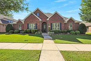 Rare east-facing Coventry-built home in the prestigious Winding Creek Estates. This impeccably maintained, single-owner residence offers four spacious bedrooms down and four full bathrooms overall. Exceptional upgrades include a wrought-iron front door, hand-scraped hardwood floors, elegant plantation shutters, professionally designed landscaping, and a beautiful epoxied 3-car garage floor with utility sink. The chef's kitchen features a large center island, expansive countertops, and abundant cabinetry, perfect for culinary enthusiasts. The low-maintenance backyard is an entertainer's dream, boasting an oversized covered porch with a cozy fireplace and built-in grill, ideal for weekend gatherings. Upstairs, a generous game room with a wet bar and mini-fridge adjoins a large media room for endless entertainment. A 6x10 Tuff Shed provides convenient storage. Ideally located just 3 miles south of 380 and 4 miles north of 121, this home is minutes from HEB, the new Trader Joe's, top golf courses, and diverse dining options.