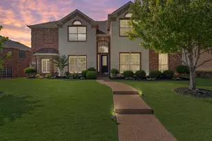 Gorgeous home located in the heart of Frisco's Lone Star ranch is close to upscale amenities such as pickleball courts, 3 resort style pools and waterslide, fintness center and clubhouse. This beautifully maintained residence with endless recent updates features both formal living and dining spaces, warm wood flooring, and a grand entryway that creates a lasting first impression. The primary suite is conveniently located on the main level and offers a generous walk-in closet, while an additional bedroom or private office downstairs is paired with a full bath-perfect for guests or a work-from-home setup. Chef's kitchen ready for entertaining with elegant quartz countertops, a gas cooktop, double ovens, and high-end KitchenAid appliances, making it ideal for everyday cooking and entertaining. Enjoy the open-concept two-story family room filled with natural light and centered around a cozy gas fireplace. A large coat closet is tucked under the stairs, and the oversized laundry room provides ample storage and workspace. Upstairs, you'll find four spacious bedrooms, two full bathrooms, a large game room, and a media room complete with a closet. Each secondary bedroom includes a walk-in closet, offering plenty of storage throughout. Step outside to a large backyard with a covered patio-perfect for outdoor dining and play. With plenty of room to grow and entertain, this home is a must-see.