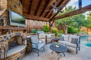 Be sure to watch the attached drone video that captures the heart of this beautiful Frisco neighborhood with its peaceful pond, lush greenbelt, scenic walking trails, and inviting picnic areas. As you arrive at this exceptional five bedroom home in the prestigious Estates on Legacy Drive, the impressive curb appeal and charming front patio immediately set the tone for the lifestyle that awaits. Step inside and discover a residence that has been lovingly maintained, where the chef inspired kitchen opens gracefully to a warm living room highlighted by a cozy fireplace and a wall of windows that frame serene views of the sparkling private pool and the tranquil greenbelt beyond. The backyard unfolds like an entertainer's dream with a shaded pergola, built in grill, and full outdoor cooking area, along with a dedicated planting space for your garden visions and a handcrafted shed designed for easy storage. Upstairs, the home continues to surprise with an expansive game room featuring a wet bar, refrigerator, and cabinetry, room for a pool table, and a separate media style family room perfect for movie nights, while the fifth bedroom offers flexibility for guests or creative use. Thoughtful touches such as a study nook, a generously sized laundry room, and a three car garage with insulated wood style doors add everyday comfort. Beyond the home, walking paths and a quiet pond offer peaceful moments, while The Star, Legacy West, the Omni PGA Resort and Spa, highly rated Frisco ISD schools, Stonebriar Mall, and the Frisco Dinosaur Library bring the vibrant Frisco lifestyle to your doorstep. This home is more than a place to live. It is an invitation to experience comfort, joy, and a truly extraordinary way of life, supported by a four ton condenser and furnace plus a five ton York unit installed in 2019, insulated three car garage doors installed in 2014, and a water heater installed in 2018.