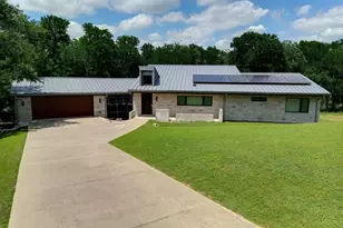 Custom Eco-Friendly Home by Ferrier Custom Homes Located in Country Club Estates This meticulously crafted 2-bedroom, 2-bath home is nestled on a beautiful lot with an abundance of trees, offering privacy and tranquility. Built with sustainability and luxury in mind, this 0.799-acre property is constructed with Structural Insulated Panels aka SIPs, superior insulation, earning an impressive HERS Index score of 1. The master retreat is spacious, featuring a luxury bath with dual shower heads and offering gorgeous views of the treed lot. The exterior showcases Lueders Stone on all sides, including the oversized garage, along with a metal roof, ensuring low maintenance. Energy efficiency is enhanced with 24 solar panels and a whole-house power surge protector. A dehumidifier integrated into the AC and heat pump system helps maintain optimal indoor air quality. Inside, the open-concept layout is designed for seamless living. Elegant walnut baseboards, trim, and cabinetry add warmth and sophistication, complemented by 3-foot-wide doors and pocket doors for accessibility. Hunter Douglas roll-up shades are installed throughout for style and convenience. The gourmet kitchen is thoughtfully designed with a double oven, an oversized two-level island with a prep sink, a double-sided kitchen sink, and a spacious walk-in pantry with outlets and a prep area. The home also boasts a Mezzo direct vent gas fireplace, a tankless electric water heater, and a built-in air purifier. A centrally located saferoom-tornado shelter provides peace of mind. Outdoor living is equally impressive, with a dual-level deck and a gas firepit. A dedicated breezeway space features a gas grill hookup for outdoor cooking. Additional amenities include wired connections for Phantom Screens in the breezeway and an electric car plug-in. This one-of-a-kind home blends luxury, energy efficiency, and thoughtful design. Priced to sell!! Original Architech rendering available for third bedroom!