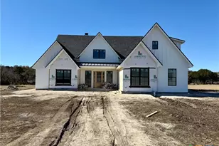 Beautiful new construction home situated on 5 acres in Gatesville ISD, complete with a scenic seasonal creek and peaceful country setting. This 4 bedroom, 3 bath home features an beautifully designed board and batten & stone exterior, and offers an inviting open-concept floorplan featuring a spacious living area with vaulted ceilings and a wood-burning fireplace. The kitchen is designed for both function and style with white cabinetry, marble countertops, a large alderwood island, a generous walk-in pantry, and convenient mudroom space. The isolated primary suite features vaulted ceilings and a spa-like en suite bath with a freestanding tub, separate shower, and dual vanities. Three spacious guest bedrooms each offer walk-in closets, providing ample storage and flexibility. Upstairs, a versatile game room serves as an ideal second living or entertainment area. Energy-efficient foam insulation enhances comfort and efficiency throughout the home. Additional features include a 2-car garage and a back patio perfect for enjoying the surrounding acreage and natural views. This property offers the ideal combination of modern finishes, thoughtful design, and room to enjoy peaceful country living.