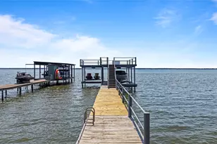 Enjoy lakeside living with wide open water views from this well-maintained waterfront home. With 60 feet of shoreline and a spacious screened porch, this property is ideal for weekend escapes or full-time lake living-just a convenient drive from Dallas. The open-concept living, kitchen, and dining area is filled with natural light and offers beautiful open water views, centered around a cozy wood-burning fireplace-perfect for gathering with family and friends. A utility room with additional pantry storage adds everyday functionality. The waterside primary suite features peaceful lake views, direct access to the screened porch, and a nicely sized walk-in closet. Two additional bedrooms and a full two-car garage provide plenty of space and storage. The home is move-in ready and easy to enjoy right away, with the opportunity to personalize over time. A handicap-accessible ramp is currently installed in the backyard but can be removed if not needed. You'll also enjoy the convenience of a dedicated boat slip and dual jet ski lift-perfect for spontaneous lake days. An extra-long driveway offers plenty of parking for guests. Short-term rentals are allowed with proper permitting through Gun Barrel City, making this an excellent opportunity for both personal enjoyment and income potential. Conveniently located near Walmart, Lowe's, Starbucks, and more. Storm damage to the boathouse walkway-seller intends to complete repairs prior to closing or offer a concession in lieu. No restrictions on STR-Must obtain permitting from Gun Barrel City.