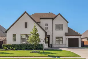 Built in 2022, this stunning white painted brick home offers the perfect blend of timeless curb appeal and modern luxury. This home features open-concept living with a thoughtful floor plan offering two bedrooms on the main level and two additional bedrooms upstairs for comfort and flexibility. Meticulously updated in 2025 with high-end finishes and on-trend design elements creating a truly special property. Step inside to find a remodeled primary suite featuring a spa-like bathroom with premium Starlight custom glass shower doors, a new freestanding tub, designer tile, and custom cabinetry. The all-new laundry room is both stylish and functional, complete with custom cabinets, a built-in locker area, new lighting, updated hardware, and a convenient pocket door. A dedicated office has been transformed with a built-in desk and cabinetry topped with luxurious Taj Mahal quartzite and enhanced by new recessed lighting. All bathrooms have been elevated with Kohler plumbing and RH fixtures, plus new wood flooring has been added in the primary and guest bedrooms, stairs, and the entire second floor. Plantation shutters, new LED canned lighting, and RH fixtures bring elegance throughout. Additional thoughtful touches include new pocket doors in the primary suite and laundry and freshly painted interior including stair risers and posts. Seamless indoor-outdoor living is achieved with stacking glass panel doors and electric patio screens, offering privacy and comfort. You will love the low maintenance backyard with artificial turf, beautiful Eagleston Holly trees, tile overlay oversized covered patio, and a built-in grill. The spacious 3 car garage features epoxy flooring and additional storage. Situated near top rated schools, scenic parks, trails, shopping, and dining, this home offers the best of Highland Village living. Don't miss your chance to own this beautifully updated property!