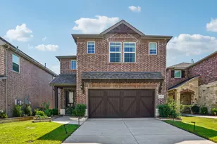 Discover this remarkable 2021 Energy Star Pulte-built home featuring three bedrooms and three bathrooms. The open-concept design invites you into a generous living area adorned with stylish finishes and a striking wrought iron staircase. The modern kitchen is equipped with stainless steel appliances, a gas cooktop, a walk-in pantry, quartz countertops, and elegant 42-inch espresso cabinets. A versatile bonus room on the main floor currently serves as an office. Upstairs, the master suite offers two walk-in closets, a spacious double vanity, a walk-in shower, and a separate bathtub. Two additional bedrooms share a conveniently located bathroom near the laundry room, while a flexible space upstairs can function as an office, workout area, or family room. Notable upgrades include designer wood-like flooring, tray ceilings, and quartz countertops in the bathrooms. The covered porch and backyard provide a serene view of the fenced yard. Enjoy the amenities of the Legends Crossing gated community in Valley Ranch, which features a green belt, jogging and biking paths, a playground, fitness center, pool, and clubhouse. The property also includes a builder warranty and has a lighting grounding system.