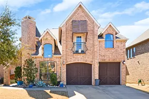 Welcome to this breathtaking 3,558 sqft residence in Lantana, Texas. Located in the sought after Isabelle Addition, this architectural masterpiece captivates with its grand turret entrance and a Juliet balcony. Step inside to discover an interior full of exquisite details...hand-scraped wood floors emanate warmth, while textured walls add depth and character. Soaring ceilings and graceful arched doorways create an airy, expansive ambiance throughout the main level. Off the gallery wall entrance is an appointed office with second fireplace and tons of natural light. Arched doorways lead you into the formal dining space to the right of the entryway, perfect for large gatherings. The heart of the home is the immaculate and impressive gourmet kitchen, featuring Carrara marble counters and backsplash, an oversized island with bar seating, stainless steel appliances, a gas range, and cozy breakfast nook. The living room, complete with inviting fireplace, offers the perfect space for relaxation. The owner's suite offers a true retreat, featuring a striking shiplap wall and luxurious ensuite bath with jetted soaking tub, walk-in shower, separate dual vanities with travertine counters, & a walk-in closet that connects to utility room. Ascend to the upper level to discover a built-in bar with wine cooler and bar seating, plus your own versatile loft or game room overlooking the bar. And, a full balcony is located off the spacious loft! This floor also houses a large media room or fourth bedroom, as well as two additional bedrooms and a full bath. Stepping into the backyard, you'll enjoy an outdoor living space with stonework, wood deck with additional seating area, and beautiful landscaping! As a resident of the Lantana community, enjoy access to world-class amenities, including a resort-style pool, Lantana Country Club, tennis courts, new pickleball courts and extensive hiking and biking trails. And, enjoy up to 10K towards buyer closing costs with preferred lender!