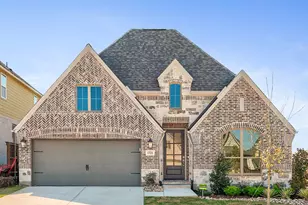 MOVE IN READY! Extended entry with 13-foot ceiling leads to open kitchen, dining area and family room. Kitchen offers generous counter space, 5-burner gas cooktop, corner walk-in pantry and inviting island with built-in seating space. Dining area flows into family room with a wood mantel fireplace and wall of windows. Game room with French doors just across from kitchen. Primary suite includes double-door entry to primary bath with dual vanities, garden tub, separate glass-enclosed shower and two large walk-in closets. Secondary bedrooms feature walk-in closets. Covered backyard patio. Mud room off two-car garage.