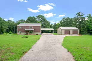 Back active, buyers decided the drive was going to be too long, no inspection even completed. This rustic beauty is move in ready custom bardominum 4 beds and 2.5 baths with a 1200 ft shop with concrete drive on almost 2 acres. Sitting on a lazy county road, private and quiet, a great location close to Lindale, schools and shopping. The entrance to this home is dramatic with 16 foot cathedral ceiling and open concept living room to the kitchen. Corner fireplace and lots of windows for natural light. The kitchen has plenty of cabinets, concrete countertops and gas range replaced in 2020, dishwasher replaced in 2024 and breakfast bar. The kitchen aslo shows off a pantry and large mud room-utility room off the carport entry, this home is built for all Texas seasons. Master ensuite is on ground floor and has a marble double shower, double vanity and walk in closet plus additional guest room downstairs. Upstairs 2 bedrooms with large bath and additional living space. Walls and attic foam insulated for energy efficiency, HVAC was replaced in 2021. Home has 2 storage, climate controlled areas for storage one on the ground floor and also the attic. The shop has electric and 2 large roll up doors and covered area off the rear plus a 2 car carport. This home has so much to offer someone who is needing space inside and out. Must see!