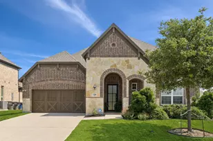 Welcome to this stunning, like-new single-story home in the highly sought-after Valencia on the Lake community! Situated on a corner lot, this south-facing gem features a custom in-ground, heated pool & spa, a covered patio, gas firepit, and an ideal layout for both everyday living and entertaining. With 3 bedrooms, 2.5 bathrooms, and thoughtful upgrades throughout, this home blends space, style, and comfort - just minutes from the lake! Enter through a custom iron front door into a bright, open layout with tall ceilings and tray detailing in the foyer. Experience the elegance of luxury engineered hardwood flooring throughout the main living area complemented by a vaulted ceiling with a striking wood beam, a cozy gas fireplace, and expansive wraparound windows that flood the main living space with natural light. The kitchen is a centerpiece, featuring a generous island, granite countertops, stainless steel appliances, a gas cooktop, walk-in pantry, and dedicated bar and coffee stations. The dining room offers a beautiful view of the pool and backyard. The oversized primary suite offers a tray ceiling, electric shades, and upgraded sliding doors that lead into a luxurious en-suite bath, complete with dual sinks, a soaking tub, an oversized separate shower, and a spacious walk-in closet. At the front of the home, you'll find two additional bedrooms - both with walk-in closets -and a dedicated workspace that could easily be converted into a fourth bedroom. Additional highlights include: New roof and gutters, plantation shutters on front of the home, upgraded landscaping. Valencia on the Lake offers resort-style amenities: two community pools, a fitness center, clubhouse, tennis and sand volleyball courts, two playgrounds, and scenic nature trails. Located in a quiet, tucked-away area just south of Highway 380 and minutes from the Dallas North Tollway, you'll also enjoy proximity to the new H-E-B, Costco, and PGA headquarters.