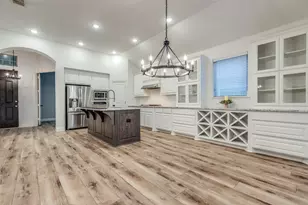 You will not find a better price on a Highland Home in McKinney with all of these upgraded features. This home has a ton of custom options and upgrades with high end luxury vinyl and NO CARPET. You'll immediately be impressed with the large kitchen and all of the counter space and cabinets that go on and on. The lighting fixtures in every room add such a touch of modern and yet timelessly classic. You'll love the open concept with large living room that has a showcase fireplace. The upgraded luxury vinyl plank pulls your eyes with the right blended color to match your design imagination. The split study gives you the perfect space to retreat and makes for a great office or playroom. The primary retreat has all of the luxury touches with plenty of cabinets, garden tub, separate shower and oversize closet.