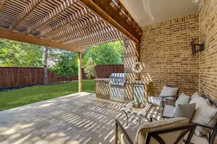 Beautiful Turnkey 5 Bedroom, 4.5 Bathroom with 3-Car Garage Home on Cul-De-Sac Street in McKinney. Fabulous backyard has covered patio with built-in grill, pergola, deck and great yard space with plenty of room for pool. Recently installed carpet and sleek wood-look tile in living areas. Fresh interior paint throughout including walls, trim, doors and ceiling. Kitchen boasts large island with granite countertops, Stainless Steel appliances including double convection oven and gas cooktop, updated backsplash, pendant lights and large walk-in pantry. Living room has beautiful soaring ceilings and gas log fireplace. Primary suite with separate vanities, frameless glass shower, vanity area, soaking tub and walk-in closet. Guest bedroom down with ensuite bathroom and walk-in closet. Study with French Doors, Formal Dining, Powder Bathroom and Utility Room with MUD Bench complete the downstairs. Upstairs includes game room, media room with theater seating and wire for surround sound, 3 guest bedrooms (1 ensuite and 2 share Jack-N-Jill Bathroom).