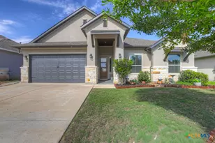 FREE GOLF CART WITH PURCHASE OF HOME: Buyer can opt for a free 2026 DENAGO EV ROVER XL OR IF PREFERRED, CREDIT TOWARDS CLOSING COSTS INSTEAD OF. Open floor plan features stone fireplace, high ceiling with beams, and tiled flooring throughout the main level. The upgraded kitchen has double ovens, chimney style vent hood, 5-burner gas cook top, R/O filtration, lighted glass accent cabinets, under cabinet lighting, soft close hinges, and Shelf Genie slide out drawers; dining room and primary bedroom are enlarged with bay windows; study has double full-light French doors; guest bedrooms are split from the primary bedroom; the primary bedroom has two vanities, frameless tiled shower, and custom Closets by Design closet; the media room features custom tile, black out shades, and mood-lighting; the only room upstairs is a bonus room with half bath. Outside is an extended patio with easy to clean Geocrete flooring and the entire yard backs to a green belt. The garage features custom built-in cabinets, Geocrete floors and a water softener. Gemstone customizable under-eave lighting allows you to create your own color palette for any occasion. Located just about a mile from Historic Gruene, you can easily hike, bike, or ride your golf cart to music venues, restaurants and boutique shops. INCLUSIONS: water softener, mounted TV's. Owner is LREB.