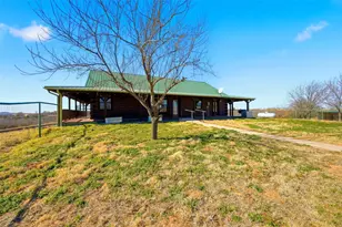Charming hilltop, ranch style log cabin with full, covered wraparound porch on 7.39 scenic acres in Montague County, with beautiful views of the surrounding countryside, located in Saint Jo ISD. This Ranch Style Cabin features a full wraparound covered porch, 2 bedrooms & 2 full bathrooms on 1st floor with a half bath & 2 flex rooms in the basement that can be used as additional bedrooms, an office, sewing room or game room-man cave. HUGE garage with room for storage & work area. Large kitchen with island that open to the dining and living areas. Property also offers covered parking, septic system, propane and private well. Ideal for those seeking acreage with privacy while still enjoying modern conveniences. Plenty of room for animals, gardening, or future expansion. If you like peace & quiet with gorgeous country views then hurry out here!