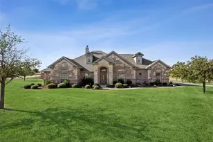 This stunning home, situated on over an acre, offers a spacious open-concept floorplan filled with natural light. Meticulously maintained and move-in ready, it boasts fresh paint throughout. This 1.5-story home features a versatile bonus-game room with a half bath upstairs. Upon entry, you're greeted by an office with French doors to the left and a formal dining room with an elegant light fixture to the right. The expansive family room showcases a recessed ceiling detail, a ceiling fan, and a cozy corner fireplace, perfect for gathering. The kitchen, open to the family room, is a chef's dream, featuring granite countertops, rich wood cabinetry, and a sunlit breakfast area. A built-in desk with shelving off the kitchen adds convenience. The large primary suite serves as a serene retreat, offering a spa-like ensuite bathroom and a walk-in closet. Step outside to a screened-in covered patio complete with an outdoor fireplace, perfect for chilly North Texas evenings. A 3-car attached garage provides ample storage and security. Don't miss this incredible opportunity to make this stately home your own!