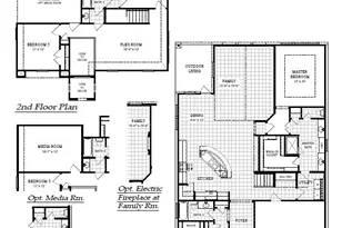 New Construction | 2-Story | 2,817 Sq Ft | 4 Beds | 3 Baths | Flex Room | Media Room | Available May 2026 | The Maddy offers a spacious and thoughtfully designed layout with a balance of open living and private retreats. The foyer opens to a secondary bedroom with a walk-in closet and nearby full bathroom, creating a flexible space for guests or extended living. Just beyond, the home opens into a light-filled kitchen, dining, and family room. The kitchen features a double island setup, built-in stainless steel appliances with a gas range, and connects seamlessly to the dining area with access to the covered outdoor patio. The vaulted family room adds volume and natural light, while luxury vinyl plank flooring runs throughout the main living areas and designer tile enhances each bathroom. Tucked off the main living space, the primary bedroom features tray ceilings and connects to an ensuite bath with separate vanities, a walk-in shower, and a spacious walk-in closet. The closet provides a secondary connection to the utility room, creating a convenient loop for daily routines. Near the kitchen, you'll also find access to the stairs, a hall tree, the garage entry, and the utility room. Upstairs, a flex room and media room offer additional space for work, play, or relaxation. A secondary bedroom with a walk-in closet sits alongside a full bathroom with separate vanities and dual access from the hallway, while another bedroom is located further down the hall. Visit our model and ask about current buyer incentives!
