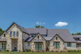 WELCOME TO YOUR DREAM LAKE FRONT PROPERTY, a Hill Country inspired modern single family home featuring 5 bedrooms, 3.5 baths across 4324 sq. ft. of living space. This home boasts of 20 ft. entry with custom wrought iron front door, beautiful hand scraped hardwood floors throughout, a chef's kitchen featuring a 6 burner Wolf cooktop, KitchenAid appliances including double ovens (convection), huge kitchen island with farm sink and quartzite countertops. Expansive primary suite includes bedroom with lots of windows and a lake view, an attached gym with mirrored wall and a dry sauna, ensuite bathroom has huge walk-in shower, separate vanities and beautiful free standing tub, closet includes large custom built-in dresser and ample space, which attaches to oversized laundry room with sink and lots of storage. Windows across back of home for amazing views of the lake. Living room boasts of 19 ft. stone fire place. Gorgeous study with built-in bookcase and glass French doors. Wine cellar with built-in cabinets, wrought iron door, full wall wine rack and provisioned for built-in fridge. Walk down the hall to the impressive game room and wet bar with fully bricked back wall and beautiful 13' Anderson sliding glass doors. One guest bedroom with ensuite bathroom downstairs, 3 bedrooms and jack and jill bath upstairs. Each level has built-in custom desk, featuring upper and lower cabinetry. 2 large climate controlled and fully decked walk in attic spaces. Dual oversized garages, the larger one featuring additional shop space with utility sink and separate garage door for UTV or mower. Step outside to an oasis with expansive patio space that includes a stone fireplace, built-in electric heaters, motorized Phantom screens enclosing the main patio area, wrought iron fence, epoxy floors, outdoor kitchen, cedar ceilings and breath taking views galore! Please see attached list for more details about the endless custom features this exquisite home offers.