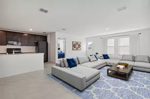 Move in Ready! All Tile flooring (no carpet) 4 Bedrooms, 2 bath, 2 car garage Lennar home. Lease includes Washer, Dryer and Refrigerator. Pet Friendly. French Blue Farmhouse. Inside is sparkling white and bright with easy care, ceramic tile floors thru out. Recessed can LED lights are energy efficient. Huge family room next to open kitchen with Quartz counter tops and island. All electric appliances: Primary bedroom is located at the back of the home with walk in closet. Full size laundry room with new washer & dryer provided. Back yard is flat, fully sodded, sprinkler system and fenced. Master planned community of Bridgewater Estates: elementary school, swimming pool, beach, fitness center, parks, ponds and volleyball court. Professionally managed. You will love living here! 2 pet max.