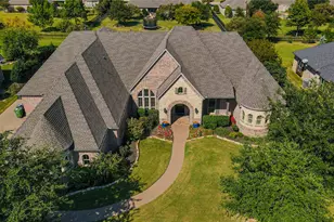 Imagine yourself coming home to this stunning custom-built residence, where every detail - from the hand-crafted finishes to the serene outdoor living spaces - reflects timeless Texas elegance and comfort. Built by award-winning custom builder Dave R. Williams, this home showcases exceptional craftsmanship and architectural design. The open-concept floor plan features 5 spacious bedrooms, 5.1 baths, a gourmet kitchen with an oversized island and walk-in pantry, and a vaulted family room with wood-beamed ceilings. Elegant groin ceilings, hardwood floors, and designer lighting create warmth and sophistication throughout. The primary suite offers a private coffee bar, dual walk-in closets, and a spa-inspired bathroom with a jetted tub and built-in vanity mirror. Enjoy movie nights in the media room or quiet mornings on the covered patio by the outdoor fireplace, surrounded by mature trees and lush landscaping. Additional highlights include Toto washlets in all bathrooms, an EcoWater softener system, a 3-car epoxy-floored garage, and a lightning arrestor for added protection. Located in the highly rated Prosper ISD, close to parks, dining, and top amenities - this is luxury living at its finest.