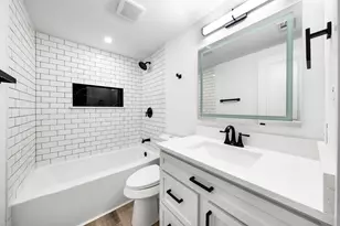 Fully remodeled 2-bedroom, 1-bath home located in the heart of Quinlan. This updated property offers 895 sq ft with an open living and kitchen layout, luxury vinyl plank flooring throughout, and an eat-in kitchen featuring quartz countertops, built-in cabinetry, and modern appliances including a refrigerator. The home includes an oversized utility room, covered front porch, attached carport with storage room, and two additional storage sheds. The large fenced backyard provides ample outdoor space with wood and wrought-iron fencing. Situated on a spacious interior lot within Quinlan Independent School District, and conveniently located near local amenities, shopping, and dining. Move-in ready.