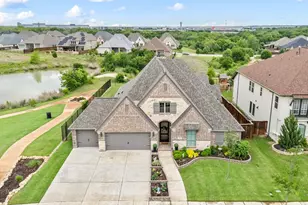 Welcome to this beautifully maintained single story home with 4 car garage in the heart of Fairway Ranch! Ideally located just minutes from Downtown Roanoke-widely recognized as the dining capital of Texas-this home offers easy access to a vibrant array of restaurants, shops, and community events. Enjoy year-round outdoor living on the extended, covered backyard patio that overlooks the glistening salt water pool, community pond and walking trails. Step inside to an extended entryway with soaring 12-foot ceilings that lead into a spacious, open-concept family room, kitchen with ample storage space and dining area, all adorned with elegant wood-look tile flooring. The living room features a cozy fireplace and a large sliding glass door that fills the space with natural light and creates a seamless indoor-outdoor connection. The updated kitchen is a chef's dream, complete with generous counter space, a 5-burner gas cooktop, double ovens, walk-in pantry and an oversized island with built-in seating-perfect for casual dining and entertaining. The media room with French doors offers a versatile space for movie nights or a home office. The primary suite is a serene retreat, featuring a wall of windows that invite in soft, natural light. The spa-like ensuite bath boasts dual vanities, a garden tub, a separate glass-enclosed shower, and two large walk-in closets. A mudroom off the main living area leads to a spacious four-car garage, providing ample room for storage, hobbies & accessory vehicles. You don't want to miss the photos included of all the amenities provided in Fairway Ranch - this wonderful community truly has it all - from a playground, walking trails, BBQs and community pool- to the pond with a dock, you don't want to miss it!