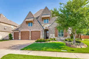 WELCOME HOME to this gorgeous Highland Home with a true 3-car garage, situated on a large cul-de-sac in the desirable Tribute Lakeside Golf and Resort Community. This spacious home sits on a quarter of an acre with 4 bedrooms, a dedicated office at the front of the home and a 2nd bed downstairs. Upon entering you'll be greeted by an inviting foyer that boast loads of natural light. This home features plantation shutters, upgraded hardwood floors and luxury low-profile carpet throughout. The primary bedroom is cozy and spacious with room for a seating area. The ensuite bath has double sinks, soaking tub and beautiful quartz countertops with a vanity. Upstairs features a game room and flex space that is perfect for a play room, game day or any entertaining. The HUGE backyard has a dream patio with outdoor kitchen, stamped concrete floor and a bar. Relax out back under your pergola while watching the kiddos play. There is still plenty of space to add a pool, playset or whatever suites your needs. The 3-car garage has plenty of space for multiple vehicles, golf cart and extra storage with a door and easy access to the backyard. And there is even a built in storm shelter. The Tribute is home to miles of hiking and biking trails, resort style pools, year round events for all and is nestled on the shores of Lake Lewisville. Just minutes away from prime dining and shopping at The Star, Grandscape and the Stonebriar center. This is a MUST SEE!