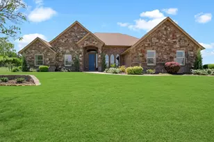 Stunning custom home on a beautifully landscaped 1-acre lot in Weatherford, featuring fresh updates and thoughtful design throughout. This spacious 4-bedroom home offers a split-bedroom layout, with a private primary suite that includes a large walk-in closet and a luxurious en-suite bath with a walk-through shower. Just off the entry, a flexible space can serve as a formal dining room, sitting area, or home office. The kitchen boasts granite countertops, stainless steel appliances, and a layout perfect for everyday living and entertaining. Large windows overlook the backyard oasis, complete with a sparkling inground saltwater pool, new pergola, low-maintenance turf, expanded patio area, and updated pool equipment including a robotic cleaner. Inside, you'll find plantation shutters, new designer lighting, fresh paint, new flooring, and a recently installed AC system. The 3-car garage includes epoxy flooring and extra storage space, and the home is equipped with a water softener system and RO filter-every detail designed for comfort and style. Located close to downtown Weatherford and Ric Williamson Loop making commuting and getting around town much easier.