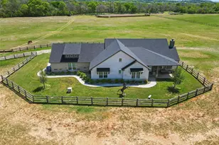 Stunning home situated on 15.4 acres in Brock Texas, this stunning 2,561 square foot custom-built home is nestled within the renowned Brock ISD. Only three years old, this home features a very open floor plan with large windows that overlook the lush coastal field, and it backs up to the serene Patrick Creek. With three bedrooms and two and a half baths, this open floor plan boasts beautiful hardwood throughout. Kitchen is open to the vaulted living room, lots of cabinets, large island, and high end appliances. The property is fully fenced and cross-fenced, with pipe rail fencing on the exterior and beautiful cedar fencing around the house. Enjoy outdoor living with a swimming pool and hot tube. Large shop featuring two glass roll-up doors, covered trailer storage, and four large stalls for horses. Stalls have auto waterers and premier stall feeders. New roping arena. Don't miss this opportunity to own your own horse property in Brock, Texas.