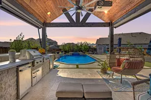 Multiple Offers Received. Highest & Best due by noon, Oct 21. This move-in ready masterpiece boasts over $340K in premium upgrades and sits proudly on an oversized corner lot in the highly desirable Inspiration community. Inside, enjoy an open layout filled with natural light, soaring ceilings, hardwood floors, upgraded lighting, and electric window shades. The spacious living room offers an accented corner fireplace, and views to the backyard oasis, while the chef's kitchen features quartz countertops, lighted upper cabinetry, smart appliances, a large island, walk-in pantry, and generous storage. The oversized downstairs primary suite boasts a spa-like bath with soaking tub, dual vanities, and a custom walk-in closet designed for efficiency. A second bedroom on the main level provides convenience for guests. The laundry room includes upgraded cabinetry and shelving. Upstairs are two spacious bedrooms, a full bath, and a large flex room currently used as a second living area. Escape to your private outdoor retreat featuring a custom heated pool and spa with water features, framed by a cedar-covered outdoor living space built for relaxation and entertaining. Cook with ease using the built-in grill, griddle, ice machine, and fridge. Ceiling fans and an electric sunshade ensure comfort, while surround sound and a projector with screen create magical family movie nights. Gather around the cozy fire pit with hardscape seating, or follow the pebble path to a charming storage shed. Raised garden beds, trees, and inviting seating enhance the lush greenspace-ideal for pets and play-all enclosed by a new privacy fence for added tranquility. Enjoy resort-style amenities including Club Inspiration four pools, lazy river, fitness center, clubhouse, and playground. Nearby you'll find Hope Harbor pool, fishing pond, sand volleyball, putting green, hammock park, dog park, & a scenic 25.5-mile trail along Lake Lavon. This breathtaking home offers unmatched comfort