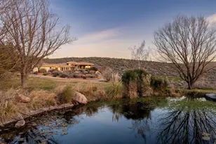 Private 34+ acre gated Southern Utah estate offering rare seclusion, sweeping red rock views, and unobstructed open sky at the end of a paved road. Built by Mark Fahrenkamp in 1999 and extensively updated, the 3-bedroom, 3-bath home with den features a dramatic great room and expansive glass-railed deck capturing stunning sunsets. Below the home, a peaceful bass and bluegill stocked pond with lily pads and gazebo creates a serene retreat. The main residence offers a desirable split-bedroom layout with a spacious primary suite featuring two walk-in closets (one with built-in safe) and a custom bath with dual sinks and walk-in shower. Two additional bedrooms each offer nearby or private 3/4 baths. Major 2017 updates include an enclosed back porch with Indian Temple Door, Art Nouveau fireplace, remodeled kitchen and primary bath featuring custom hand made ceramic tile by K.J. Patterson and new flooring throughout. The gourmet kitchen features a large solid granite island, stainless steel countertops, built-in Wolf induction cooktop and oven, touch-activated sinks, integrated-panel dishwasher, walk-in pantry, and a flexible office/butler's pantry/laundry space. The home connects to an attached 2-car garage with utility sink and laundry hookups. Designed for privacy and flexible living, the property includes a converted cold storage basement into a private mother-in-law apartment with separate entrance providing a 4th bedroom and bathroom, kitchenette, full bath, walk-in closet, and studio space. Additional features include an RV garage with mezzanine and multiple entry points, a barn garage (both built into bedrock), plus a bathroom located in the garage/workshop loft. The home is equipped with a whole-house generator with 500-gallon propane tank, two HVAC systems, three hot water tanks, whole-home vacuum and water softener, fire pit, greenhouse, caged garden beds, and drip irrigation. The property includes six culinary water allotments with ASSSD, 1.75 irrigation shares with Leeds Water Company, spans three parcels, and offers future subdivision potential (buyer to verify). A rare opportunity to own a secure, private retreat combining luxury living, water, infrastructure, and long-term self-sufficiency in Southern Utah.