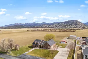 This home is exactly what you have been looking for. Perfectly positioned on just over 1 acre with unobstructed views of Mt. Nebo to the north and breathtaking mountain views surrounding the back of the property. Bordering open farmland, the setting offers peaceful country living with wide open space, quiet surroundings, and scenery that changes beautifully with the seasons. This all brick farmhouse rambler was designed for comfortable living and memorable gatherings. A covered patio creates the perfect place to start the day, watching the sun rise over the mountains while taking in the calm and beauty that surrounds the home. Inside, the main floor welcomes you with an open layout and vaulted ceilings that create a bright, airy feel throughout the living spaces. Large windows bring in natural light and showcase the surrounding views. The kitchen is thoughtfully designed for both everyday living and entertaining, featuring granite countertops, a high end range with water pot filler, double ovens, a food compactor, and even towel and plate warmers. The primary suite offers a private retreat with its own walkout to the covered patio. The ensuite bathroom features a jetted tub, an oversized granite surround shower, and a gas fireplace that adds warmth and a touch of luxury, creating the perfect place to unwind at the end of the day. Downstairs, the basement features impressive 10 foot ceilings, multiple storage rooms, and a second kitchen that makes hosting guests or accommodating extended family easy and comfortable. A private movie theater with drop down steps adds a fun and memorable feature, perfect for movie nights or watching the big game. Above the garage, a bonus room with skylights fills the space with natural light, creating a bright and versatile area that could serve as an office, studio, playroom, or additional living space. For added comfort and efficiency, the home is heated and cooled with two geothermal pumps, allowing for reliable and customizable year round comfort. Homes offering this kind of setting, space, and thoughtful design rarely come available. With stunning views, peaceful surroundings, and room to live and gather, this truly is a one of a kind property ready to welcome its next chapter. Additional land may be able to purchase.