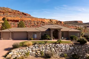 Nestled in Paradise Canyon, this beautiful home is surrounded by striking red rock formations and a peaceful canyon-like setting, while remaining close to shopping, dining, and daily conveniences. Enjoy direct access to nearby walking and biking trails and take in Southern Utah's natural beauty. Inside, the home offers abundant natural light, high ceilings, and a cozy fireplace. The open kitchen features warm wood cabinetry, generous counter space, and an island that flows into the dining area-ideal for entertaining. The spacious primary suite includes a relaxing en-suite bath with dual vanities, soaking tub, and walk-in shower. A covered patio provides the perfect place to unwind and enjoy the scenic views.