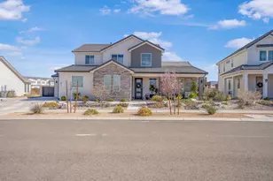 Welcome to this beautifully upgraded home in the sought-after Desert Color resort community in St. George, Utah--known for its stunning lagoon, resort-style amenities, and vibrant lifestyle. This thoughtfully designed home blends modern finishes, functional spaces, and seamless indoor-outdoor living. The main level features engineered European White Oak hardwood floors and an electric fireplace with designer tile surround that anchors the open-concept great room. Large windows bring in abundant natural light and include Lutron-controlled custom blinds, while top-down/bottom-up cellular shades provide privacy and flexibility. Stained wood and metal stair railings add warmth and character, while floating vanities and Moen chrome fixtures elevate the bathrooms. The kitchen features floor-to-ceiling cabinetry, quartz countertops with a waterfall island, GE appliances, soft-close drawers, pull-out shelving, under-cabinet lighting, a double sink, and a spacious pantry with outlets. An 8-foot sliding glass door opens to the covered patio, creating the perfect space for entertaining and outdoor dining. The primary suite offers a peaceful retreat with a sliding glass door leading to a pergola-covered patio with privacy screens. The spa-style bathroom includes an 8-foot tiled shower with rain shower head, floating double vanity, custom closet system, and stackable washer/dryer hookup. Upstairs features 3 bedrooms with mountain views, a full bathroom with updated tile and cast iron tub, an upgraded laundry room with cabinetry, and a cozy loft space. Additional highlights include an epoxy garage floor, hanging storage racks, water softener, and a climate-controlled studio shed with mini split, LVP flooring, ceiling fan, and custom blinds Residents enjoy the iconic 2.5-acre lagoon, white sand beaches, pools, pickleball courts, parks, trails, and year-round community events--just minutes from Snow Canyon and Zion National Park.