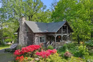 Welcome to Bird's-Eye View, an exquisite log cabin retreat nestled on nearly 5 acres of pristine woodland, offering unparalleled privacy and serenity. This property is designed for those who seek both elegance and comfort in a tranquil setting. As you approach the cabin, you are greeted by ample porch spaces-four thoughtfully designed porches perfect for entertaining or simply enjoying nature's beauty. In the winter months, stunning mountain views unfold before you, creating a picturesque backdrop for your gatherings. Step inside to discover the heart of the home: a grand Great Room featuring a magnificent stone wood-burning fireplace, perfect for cozy evenings with loved ones. The cabin boasts three spacious bedrooms and three bathrooms, including a main-level primary suite that offers a private sanctuary. The gourmet kitchen is a culinary delight, showcasing exquisite stone countertops and top-of-the-line stainless steel appliances. Its open layout seamlessly connects to the dining room, making it an ideal space for hosting memorable dinner parties. A sitting room off the kitchen has a skylight, which invites natural light and leads to the back porch, creating a wonderful flow between indoor and outdoor living. Additionally, the dining room provides direct access to a side porch, enhancing your entertaining options. A spiral staircase leads to the second floor, where two bedrooms and a full bathroom await, along with a versatile common space that can be tailored to your needs. The lower level features a two-car garage currently utilized as a workshop, alongside a finished office space, offering both practicality and potential for your lifestyle. Bird's-Eye View is not just a home; it's a luxurious escape that harmonizes perfectly with nature. Experience the tranquility of your private woodland sanctuary-welcome home.