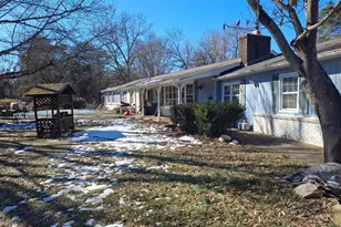 Serene and private, with 5+ acres at the end of a private road. 1 acre pond with small island, the rowboat conveys! 3 car detached garage with front entry and rear walk-in entry, is large enough for your cars and lots of extra storage. This private road ends in a cul-de-sac, and the last driveway on the Right will lead you onto a circular driveway and to the front door of this expansive one floor rancher. The front flagstone patio is shaded by a natural wood portico with 5+ yr old Wisteria climbing up the latticework and crawling across the top, blossoms dripping from above. The springtime scent is intoxicating. Across the flagstones to large french doors with sidelights you enter the light filled family room with full wet bar. The bar includes 2 small refridgerators and a wine cooler, as well as various storage areas behind the bar. The former owner was a beer/wine master and some of the brewing equipment remains. There is a powder room off of the family room with instant hot water to both the powder room and the bar sink. Next after the family room is a large bonus room that was originally a breezeway, and most recently a double office to work from home. Just 2 steps up into the original dining room with picture window overlooking flowering trees. This room was used as a tea room by the lady of the house and has a pocket door into the kitchen and double doors to the formal living room. The large kitchen with ceiling light/fan over the area for the eat in kitchen table, 2 pantry closets for food storage, a double sink attached to a concrete counter with storage cabinets and drawers beneath and a picturesque window above. Additional open shelf cabinets are above as well. On the opposite wall is a drop in stovetop and double wall ovens, Storage areas above and below as well and a double door fridge with water/ice dispenser. Extra large sliding doors open to kitchen patio with glass dining table and 4 chairs. The laundry room is off of the kitchen as well, storage cabinets top and bottom and a 1/2 bath included. The formal living room has a tremendous bay window that shows the poolside yard and large in ground pool (closed and covered). There is a beautiful brick fireplace and hearth with a solid block mantel. It has a fireplace insert and is showcased against an accent wall of reclaimed wood. Thru the double doors at the end of the room is the original foyer of the home, another reclaimed wood accent wall is opposite the living room doors; french doors open to the inground pool and yard. The Most beautiful oak tree stands here shading the pool from summer sun. Surrounded by wooden privacy fencing, the pool yard is elevated above an open field and private pond with frequent views of visiting wildlife, including turkeys, fox, deer and others. The pond's seasonal residents include a variety of geese, occasional mallards, a blue heron, and more. Back inside, from the foyer is a long hall to the bedrooms. 4 in all, ranging from 12 x 11 to 25.6 x 16.3. Most have double closets, with the largest room boasting 4 season closets and a separate shower bathroom. This large room also has double doors leading outside to a private patio next to a hot tub with cover. A lovely experience beneath the moon on a crisp night. It will be sorely missed. The hallway bath is 60s style tile with double sinks, and ceiling heat/vent. Grass wallpaper lines the lower half of the bedroom hall. Utility closets are on this hall as well. Basically all one level, it's a loooonnnnggg house. Come take a look! It would be great for a retirement home, a family's home or an Air B&B.