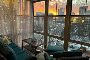 FABULOUS Top Floor Condo with Sunroom AND Balcony offering incredible views to the West and beyond! Hardwood floors throughout Living and Bedroom space. Granite Countertops and Stainless Steel Appliances. Washer and Dryer in Condo. Top floor offers higher ceilings too. 2 ceiling fans. A walk-in closet plus shelved closet plus coat closet PLUS a storage bin at garage level. One assigned garage parking space plus visitor parking. ENJOY CONVENIENCE and JOY of LIVING in a secure high rise building with front desk concierge in close proximity to Reston Town Center shopping + entertainment, Reston West metro stop, Dulles airport, and extensive path network of Reston and the W&OD trail. Building AMENITIES include gym with sauna, roof top pool, bike storage areas, rooftop grills and indoor/outdoor dining options, movie theatre, business meeting center, library, cafe, social activities, and more! Property available for end of May occupancy. Tenant pays electric and gas. Owner condo fee includes water and sewer, parking, and amenities.