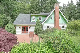 WOW Charming home on 1.3 acres with 2100 square feet located in popular Madrona Beach. This gorgeous property offers a covered pavilion with a view of the water, boat traffic & sunsets, large fenced garden and a brick patio, a gardeners dream. This unique, hand crafted home has original built-in buffets, bookcases, heated brick floors, fireplace + a wood stove, open kitchen & den. Living room has a Dutch door to the patio. Detached garage/shop/studio/office. This is a wonderful home filled with character inside and out. You don't find acreage like this in sought after Madrona Beach community. Your own forest in the back yard and sun filled front yard with southern exposure. Life is great on Camano Island, only 1 hour north of Seattle.