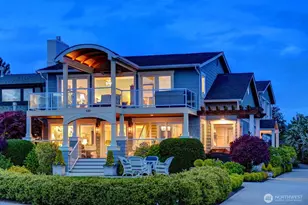 Enjoy a front row seat on Sunset Ave with sweeping and unobstructed Sound, Mountain, and Ferry views. Completely rebuilt in 2014 w/designer tiles, soapstone counters, handsome hardwoods, air conditioning, electric car charging, and backup generator. 1644sf of garage space w/room for 5 cars and a detached studio apartment, perfect for caretaker, w/kitchen, full bath, and laundry. Generous primary suite w/luxurious bath draped in tile, walk-in closet, laundry, and sitting room/office opening to a large covered deck w/heaters. An oversized bonus room w/wet bar, fireplace, and bath could be transformed into 2 additional bedrooms. Potential to add an elevator. A rare opportunity in the Bowl and an easy stroll to downtown Edmonds.