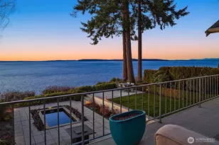 Sweeping front-row views of Sound & Olympics, this luxe 5-bed home is designed for breathtaking sunsets & seamless indoor-outdoor living, perched in a prime West-facing position. Grand 2-story entry welcomes w/ vistas & hardwoods throughout. Walls of windows & open-concept design maximize natural light & panoramic views. French doors open to view deck-see Whidbey & Baker! Terraced patio features tranquil water element & multiple gathering areas. Chef's kitchen has walk-in pantry & built-in desk. Showcase dining offers vaulted ceilings & 180° views. Formal dining boasts tray ceilings & wet bar. Retreat to Primary Suite w/ private view balcony. Lower-level rec room w/ views could be MIL suite. Front courtyard & detached 2-car garage.